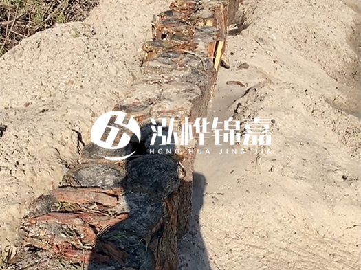 - 落葉松 :東北寒地松木密度高(氣干密度 0.6-0.7g/cm³),天然耐腐性強,適合長(cháng)期浸水的河道核心區。某長(cháng)江支流護坡工程使用落葉松木樁,10 年浸泡后樁體損耗率不足 5%。